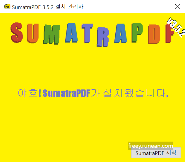 수마트라 PDF(Sumatra PDF) 설치 완료 화면